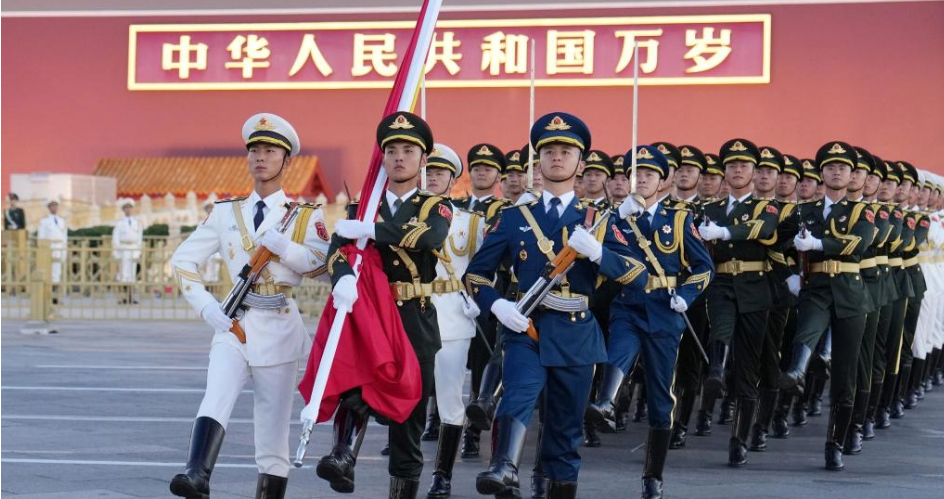 10月1日清晨,隆重的升国旗仪式在北京天安门广场举行,庆祝中华人民共和国成立76周年。