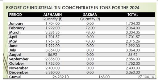 2024 年工业锡精矿出口量