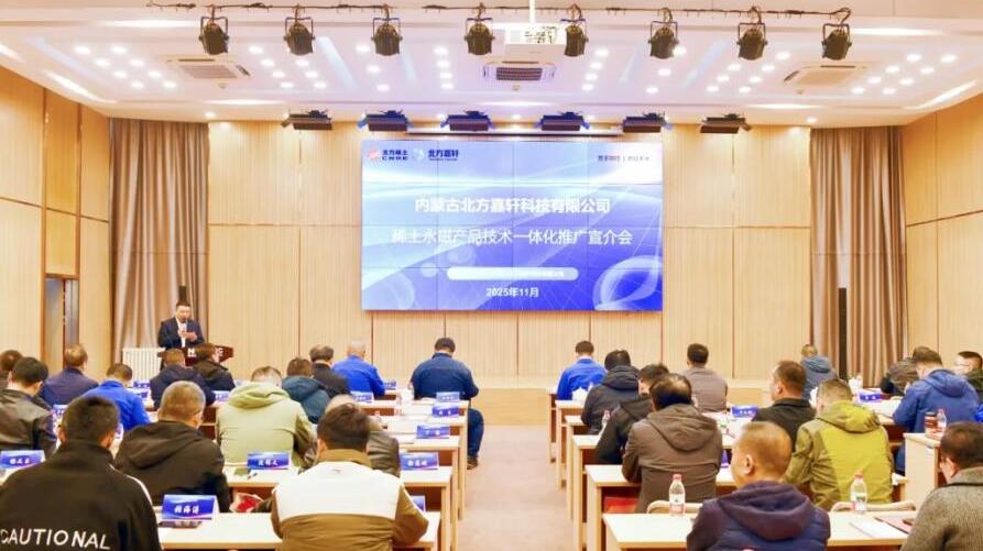 为强化创新生态建设、聚焦核心业务补链强链,加速新产品、新技术研发与市场化推广。近日,北方嘉轩举办稀土永磁产品技术一体化推广宣介会,深入探讨行业发展趋势,全面展示最新产品与技术实力。包头市工业和信息化局、稀土高新区管委会、内蒙古自治区稀土行业协会、鄂尔多斯创新产业联盟相关领导,包钢(集团)公司、包钢股份、北方稀土、包钢设计院等60余家单位相关领导、负责人参加会议。