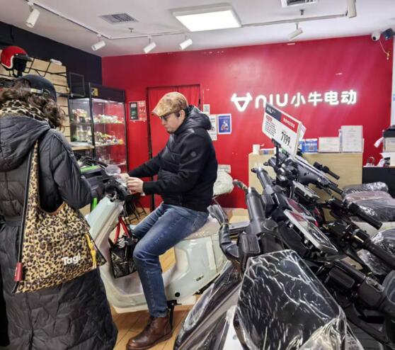11月19日,消费者在北京市西城区小牛电动车旗舰店选购旧国标电动自行车。 新华网 王岩 摄