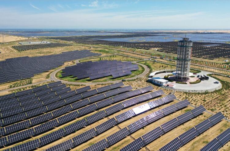 这是2025年7月30日拍摄的内蒙古鄂尔多斯市达拉特旗光伏基地(无人机照片)。新华社记者 李志鹏 摄