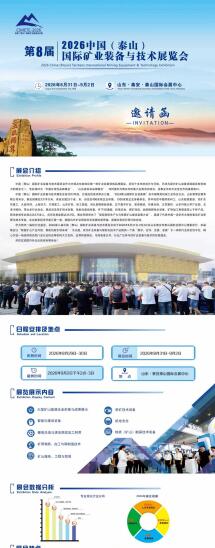 第八届“泰山国际矿业装备展”定于2026年8月31日至9月2日在泰山国际会展中心举办,继续由中国煤炭机械工业协会主办,展会以“智慧矿山产业升级、智能创新引领未来”为主题。