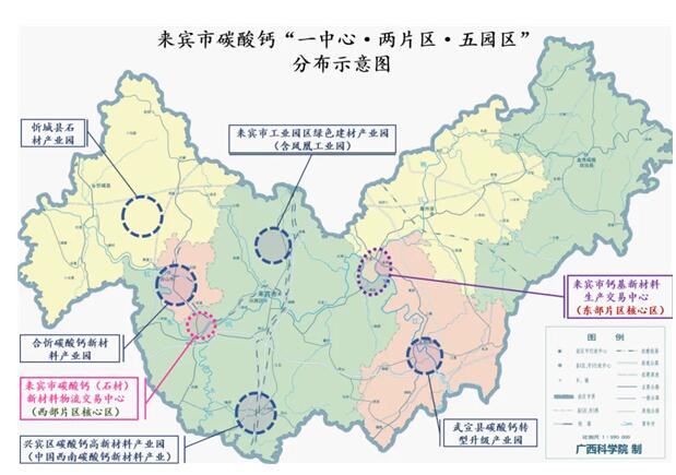 来宾市遵循“一县一特色、差异化定位”的原则,统筹规划“一中心五园区”产业格局,推动钙基新材料产业集聚化、错位化发展,进一步提升产业集群效应。在兴宾区迁江镇打造碳酸钙(石材)产品生产-加工-交易集散中心,实现原材料供应、产品加工、市场流通的高效联动。