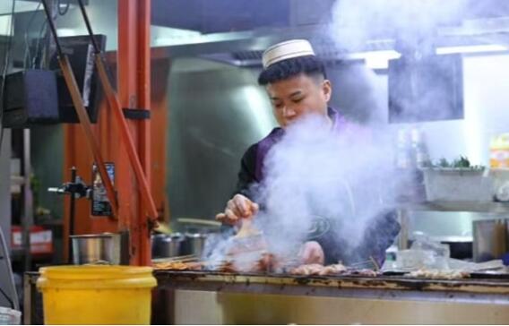 这是宏三宝馕坑烤羊排店里的烧烤场景。