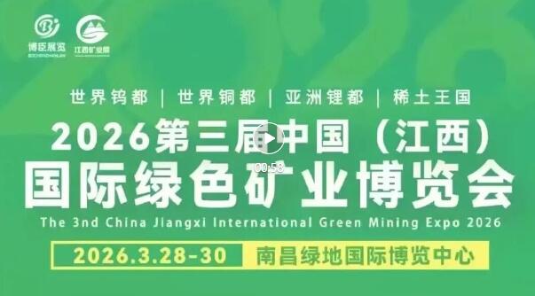 2026年3月30日,为期三天的2026第三届中国(江西)国际绿色矿业博览会在南昌绿地国际博览中心圆满落下帷幕。本届博览会以“绿色智慧创新•共促矿业发展”为主题,立足江西“世界钨都、世界铜都、亚洲锂都、稀土王国”的产业优势,汇聚国内外矿业领域政产学研用各界力量,共话绿色转型、共商智能升级、共谋合作共赢,为全国矿业高质量发展注入新动能。
