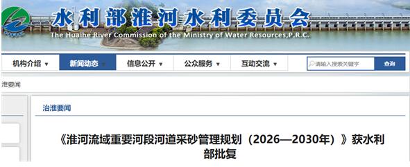 近日,淮河水利委员会组织编制的《淮河流域重要河段河道采砂管理规划(2026-2030年)》(以下简称《规划》)获水利部正式批复,明确河砂可开采总量较上轮规划压减86%、河道禁采河段占比超八成,为“十五五”期间淮河流域河道采砂管理划定明确“红线”、确立统一“标尺”,标志着淮河流域河道采砂管理进入规范化、系统化、绿色化发展新阶段,为强化流域采砂管控、守护淮河生态安全提供了重要规划依据。