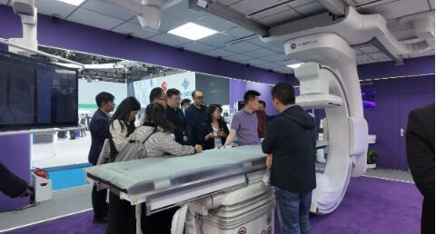 第93届CMEF现场,GE医疗展示其Allia Celeo MAX朱雀旗舰型血管造影系统。新华网逦琛 摄