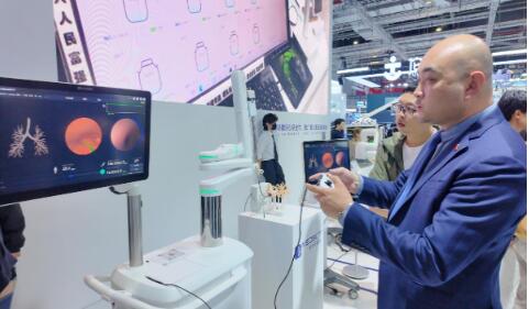 第93届CMEF现场,微创展示其支气管肺癌早诊机器人。新华网逦琛 摄