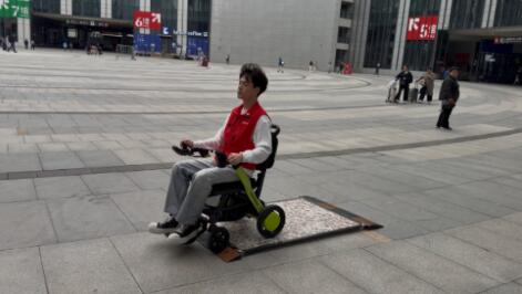 第93届CMEF期间,一台邦邦车智能轮椅正在反复测试。新华网逦琛 摄