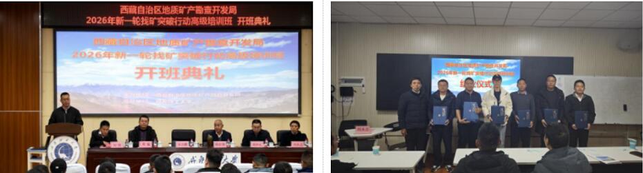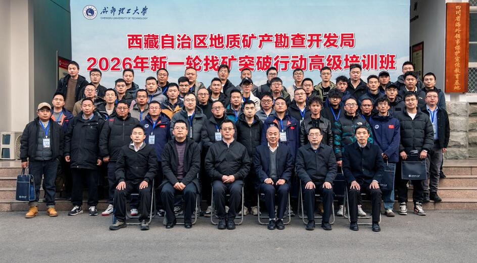 为深入贯彻落实新一轮找矿突破战略行动总体要求,全力保障国家能源资源安全,紧扣西藏自治区党委十届九次全会推动高质量发展的工作安排,服务“十五五”时期矿产资源勘查开发目标任务,西藏自治区地勘局前瞻布局、主动作为,于2026年1月14日至21日在成都理工大学成功举办为期7天的“新一轮找矿突破战略行动高级培训班”。成都理工大学党委委员、副校长周仲礼,西藏自治区地勘局党组成员、副局长宋吉鹏出席开班式。