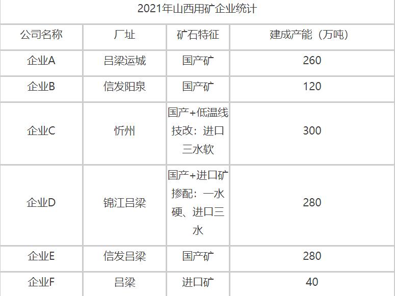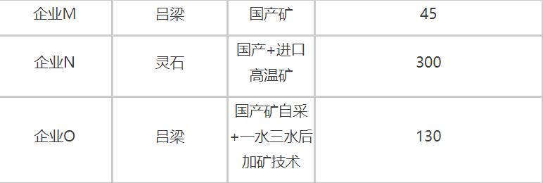 企业D;该企业目前运行三条低温和两条高温,满产,主要来自于几内亚,印尼,澳大利亚,国产矿主流品位;AL:60%,A/S:5.2 , 价格在450-500左右,走连云港,日照港,黄骅港,该企业表示进入采暖季节之后会生产会受到影响,表示后期短期内价格微调。