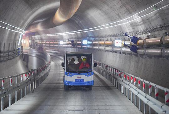 1月26日,中铁十四局的工人在长沙市湘雅路过江通道北线隧道内巡查。