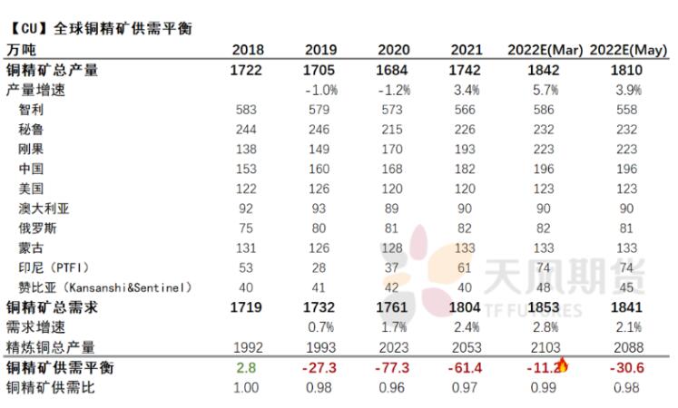 近期,我们对全球铜精矿的供需平衡做出调整,预期如下: