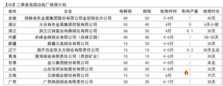 从节奏上看,随着冶炼厂检修结束和复产的推进,铜精矿需求将在二季度中后期开始增加,这也意味着,铜精矿供需最宽松的时刻可能已经见到。