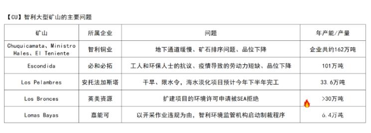 一季度以来智利铜矿不利因素频出导致生产受限