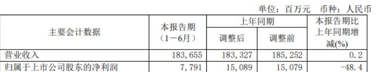宝钢股份8月30日公布2022年半年度报告,报告期营业收入1836.55亿元,同比增长0.2%;归属于上市公司股东的净利润77.91亿元,同比下降48.4%。