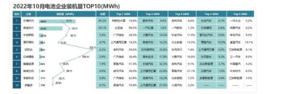 市场份额方面,前十企业配套量占比超 95.9%,其中宁德时代电池装机量占比 45.2%,份额环比减少 4.2%,弗迪电池份额增至 29.1%,电芯配套市场集中度保持上升趋势。