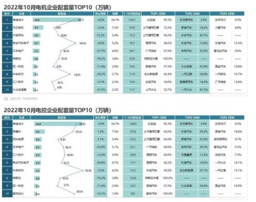 数据显示,比亚迪 10 月销量超过 21 万辆,今年 1-10 月累计销量接近 140 万辆。比亚迪旗下的弗迪动力在动力电池市场份额仅次于宁德时代排名第二,在驱动电机和电控的市场份额均为 34.7%,双双排名第一。