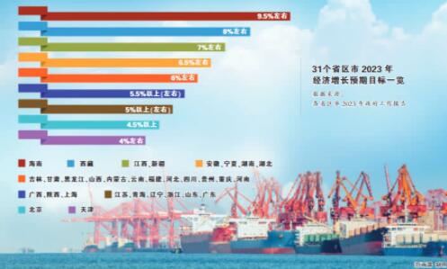 随着31个省区市2023年政府工作报告出炉,各地经济增长的预期目标也确定。上海证券报记者梳理发现,除京津两地外,其余地区今年经济增长目标均不低于5%,且半数以上地区设定的目标增速超过5.5%。