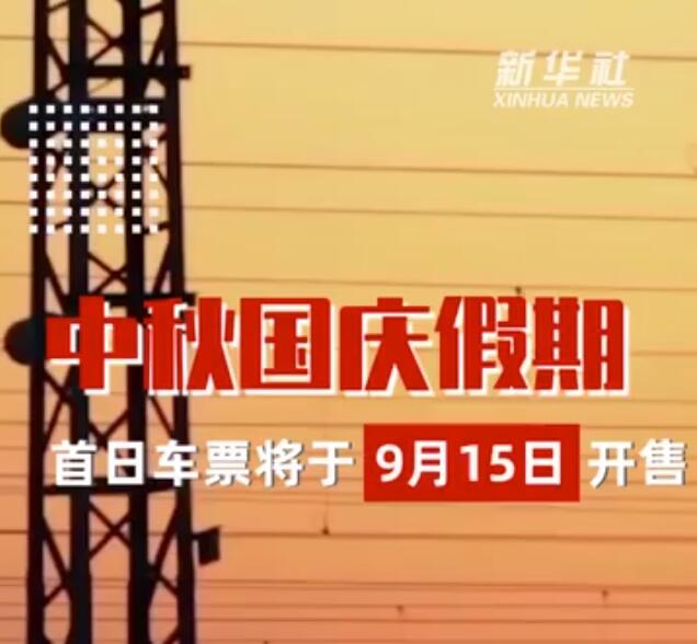 记者12日从中国国家铁路集团有限公司获悉,铁路国庆黄金周运输自9月27日开始,至10月8日结束,为期12天,全国铁路预计发送旅客1.9亿人次。铁路12306将于9月13日开始发售铁路国庆黄金周运输火车票,预计9月15日为售票高峰日,当日开始发售9月29日假期第一天的车票。 新华社音视频部制作