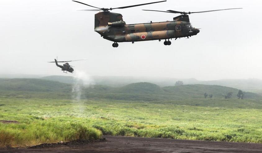 2018年8月26日,在日本静冈县东富士演习场,日本陆上自卫队举行演习。新华社记者杜潇逸摄