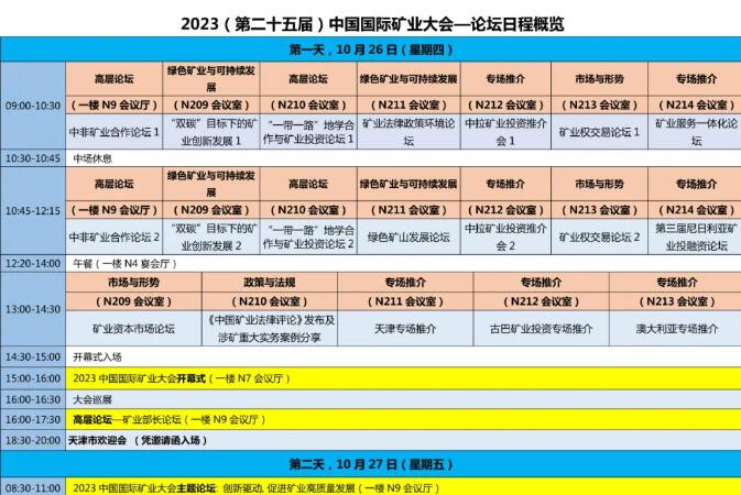由自然资源部、天津市人民政府指导,中国矿业联合会主办、天津矿博国际会展有限公司承办的2023(第二十五届)中国国际矿业大会,将于2023年10月26-28日在天津梅江会展中心召开。