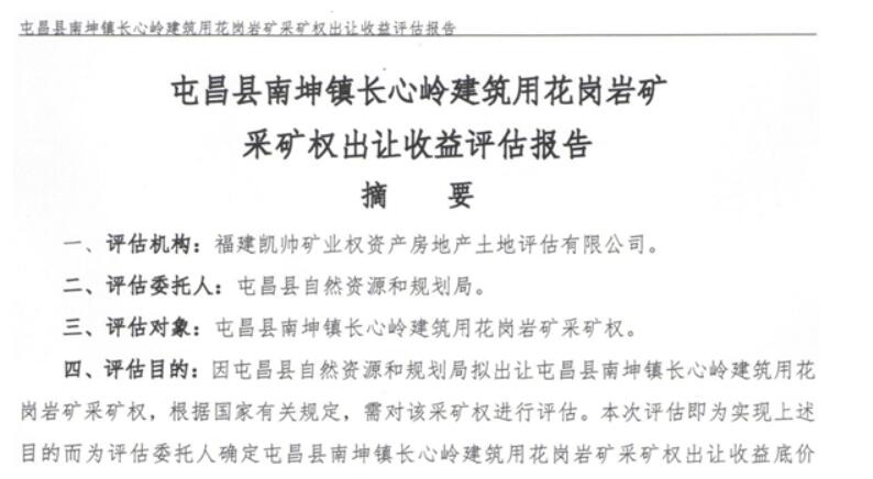 花岗岩300万方/年、综合利用剥离物48万方/年),评估计算年限21年,收益总评估价值超11亿元。