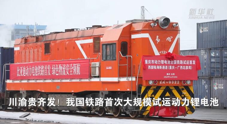 新华社北京11月19日电 19日,三列运载动力锂电池的列车分别从重庆长寿渝巴专用铁路、四川宜宾港、贵阳国际陆港缓缓开出,这是我国铁路首次大规模试运输动力锂电池,将助力国产动力锂电池产品的全球流通。