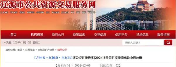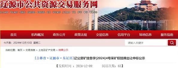 12月6日,辽源市融发矿业有限公司竞得辽源市西安区灯塔镇高古村毛山残余山体玄武岩矿采矿权。该矿资源储量300.19万方,生产规模为100万方/年,服务年限为3.5年(含基建期6个月),成交价252.59万元。