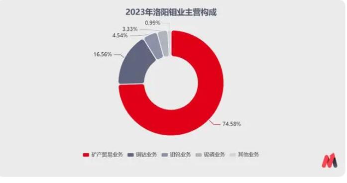 然而,尽管铜钴业务增长迅速,洛阳钼业的主要收入并非来自矿产开采,而是矿产贸易。