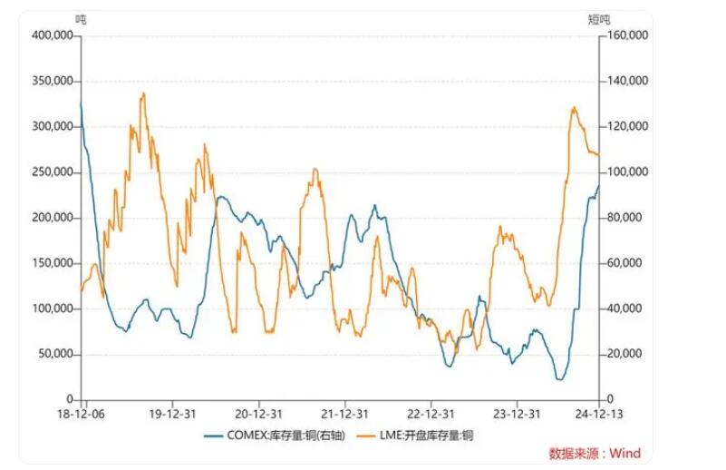此外,2024年11月15日,税务局、财政部联合发布了2024年第15号公告称,取消铝材、铜材以及化学改性的动、植物或微生物油、脂等产品出口退税。这一举措会导致铜的出口成本上升,可能导致部分海外订单流失,出口压力增大。