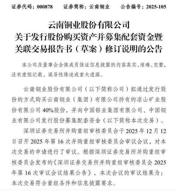 2025年12月23日,云南铜业正式披露,公司发行股份购买凉山矿业40%股权事项获深交所审核通过。