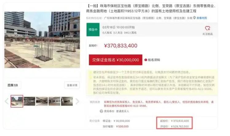 最近,京东拍卖上新了,一批珠海的房产引人注意,1.2万平米的商业用地,起拍价就是3.7亿,类似的项目合计起拍价超过30亿。