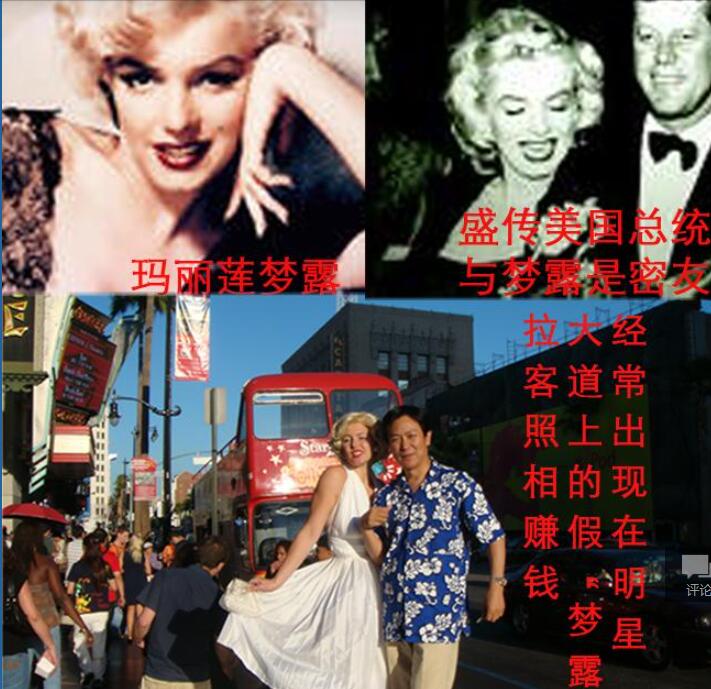 提起美国玛丽莲梦露,谁都知道这是好莱坞最为著名的美女影星,就连当时美国帅哥总统肯尼迪都对她垂涎三尺,这也是玛丽莲梦露后来莫名其妙吞食大量药物离开人世的重要内幕原因之一。今天,由于美国经济下滑不景气。许多人开始被生活开支所逼,开始在好莱坞明星大道上装扮成非常与玛丽莲梦露相像的样子,拉着各国到美国旅行的游客在大街上拍照留念,以此获得一至五美元的酬金小费。为了能够吸引更多的观众到好莱坞花钱观看美国大片的拍摄场地,好莱坞公园老板还专门挑选了长相酷似玛丽莲梦露等著名影星,专门在特定的区域内,让观众们排队等候着与她们合影留念,以此获得更多的口碑,来影响更多的人到好莱坞参观消费。