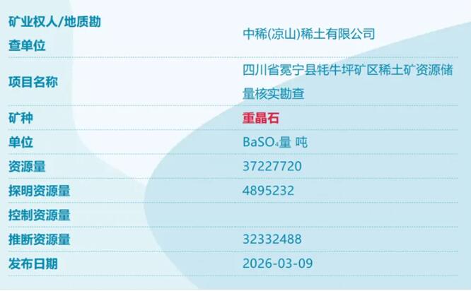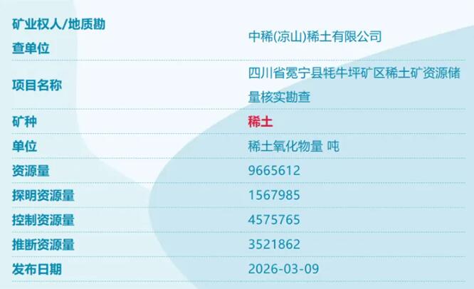此次四川冕宁县牦牛坪矿区贡献了三大核心矿种。其中