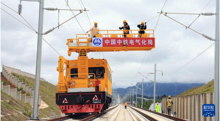 4月23日,施工人员对南珠高铁玉岑段的接触网导线进行加固。 4月23日,南珠高铁玉岑段首条接触网导线在广西玉林北至容县南区间成功架设,容县南站、岑溪东站也于近期相继封顶,标志着工程建设全面进入冲刺关键期。南珠高铁玉岑段西起玉林北站,东至梧州市岑溪市,新建容县南站、岑溪东站,设计时速350公里,是南珠高铁南玉段的重要延伸。项目建成通车后,将有力推动北部湾经济区与粤港澳大湾区“两湾联动”融合发展,为沿线经济社会高质量发展注入强劲动能。 新华社记者 张爱林 摄