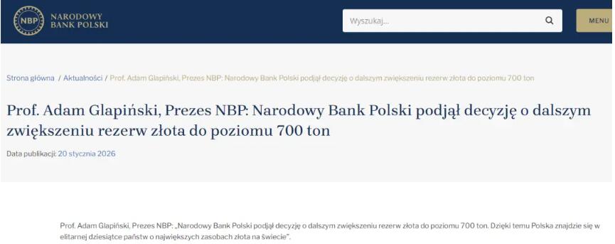 在2025年最后几个月,波兰大举增持黄金,当时正值市场波动加剧与地缘政治紧张局势升温之际。