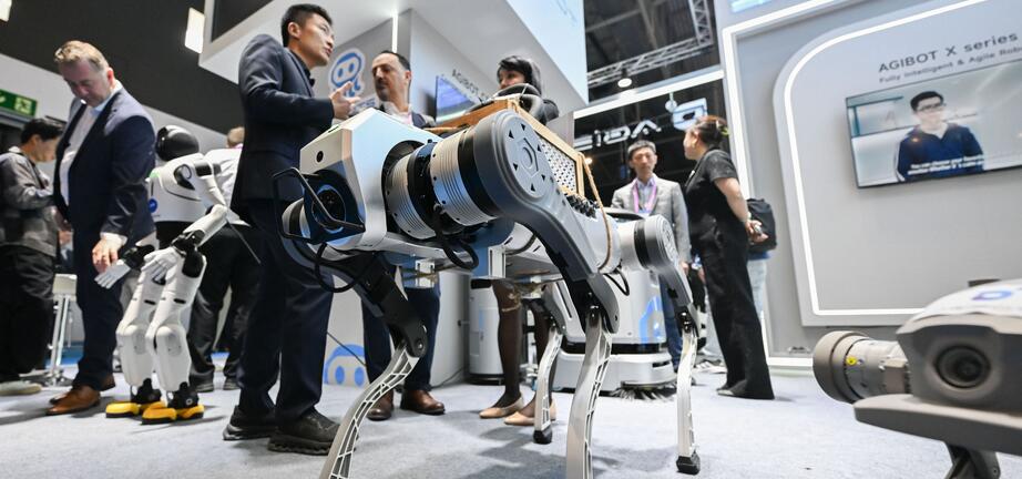 3月3日,在西班牙巴塞罗那会展中心,智元机器人展示一款四足机器人。新华社记者 程敏 摄