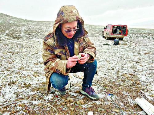 ②藏北油气项目组技术人员在观察钻取的实物岩心。 中国地质调查局成都地质调查中心供图