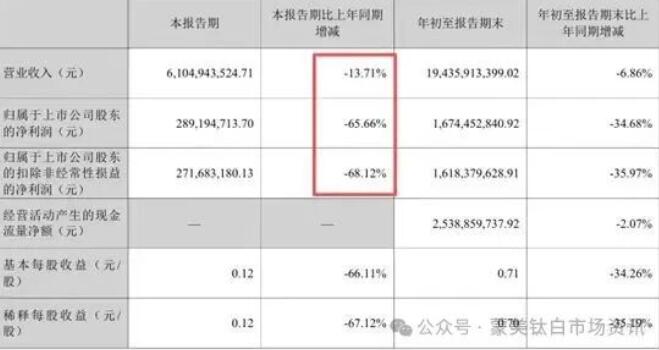 作为“钛白粉第一股”,龙佰集团(002601.SZ)于10月27日披露的2025年三季度财报,不仅揭开了自身业绩的严峻态势,更折射出整个钛白粉行业正经历的深度调整。这份成绩单显示,这家全球钛白粉巨头的盈利能力遭受严重冲击,第三季度净利润同比暴跌超六成,业绩下滑呈现加速态势。