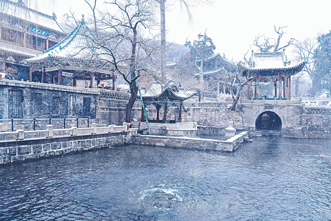 12月12日,冬雪中的晋祠难老泉复流情景。董继泽 摄