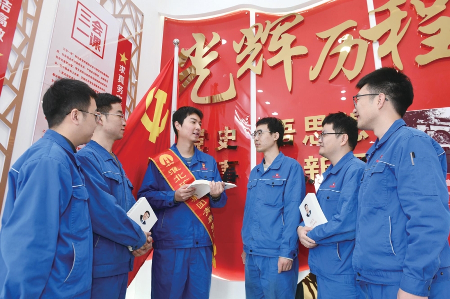 今年以来,安徽淮北矿业集团持续开展“三会一课”、主题党日等学习活动,不断引导干部职工把学习成效转化为破解生产难题、推动技术革新的实际行动。图为该集团宣讲团成员到基层进行“岗位微宣讲”。童军摄