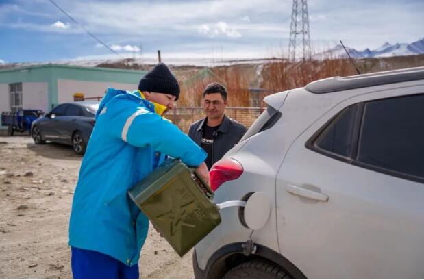 卡热(左)和加油员艾米尔江·牙热萨引(右)为客户装油。 正如卡热所说,小站是村民日常能源的依靠,更是应急救援时的保障。2月6日上午刚交接班,乡卫生院院长努尔麦麦提·艾合麦提就打来求助电话——他赶着给突发急病的牧民送药,车却因没油“趴了窝”。 接到电话的加油员艾米尔江·牙热萨引赶紧把刚下班的卡热喊回来值守,自己才开着皮卡去送油。小站只有他们两名员工,一人送油,另一人就得在站上值守,如遇上特殊情况,实在倒不开,他们也会向乡派出所求助,请民警帮助送油。 艾米尔江驱车3公里送油,努尔麦麦提非常感激。 高原辽阔,人烟稀少,车况难料,这样的紧急送油任务,他们一个月总会碰上一两次。瓦恰乡常住居民基本都是塔吉克族人,年轻人才会讲普通话,好几位村民都对记者说过:“这个站好,帮了大忙!” 一座暖心站,温暖了冰山上的来客 小站很小,但给记者最深的印象是整洁干净,尤其是洗手间——水厕、温暖、馨香,这在野外旅途尤其是偏远山区并不多见。 “盘龙古道尽头的救命站”“卫生间特别干净”“中国石油服务贴心”……这些网友评价成为小站最好的名片,也是记者在驻站时听到用户最多的感慨。一位从广东来的游客笑着说:“从盘龙古道下来,加油很及时,中国石油真是为人生坦途加油呀!” 站小、人少,这座站的管理和服务却从不打折扣。每天的交接班流程、工作操作规范和管理制度一样都不少。小站晚上虽有下班时间,但服务却24小时在线。卡热和艾米尔江的家距离小站仅1公里,但他们却常年轮值夜班,不能回家,春节等重要节日也不例外,为的是保障各方用能需求。