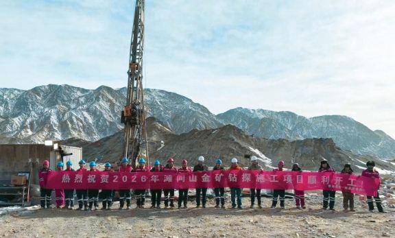 近日,青海省地质矿产勘查开发局一勘院在青海省大柴旦镇滩间山金矿举行开工仪式。图为钻孔 ZK5119开孔现场。韩梓强摄
