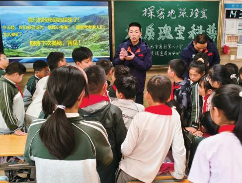 近日,中国地质调查局西安矿产资源调查中心甘肃岷县磨沟-大庄里一带金矿调查评价项目组走进西安市高新区第八小学,开展了以“探秘地下矿藏 珍惜地球馈赠”为主题的科普宣传活动。图为活动现场。赵超 摄
