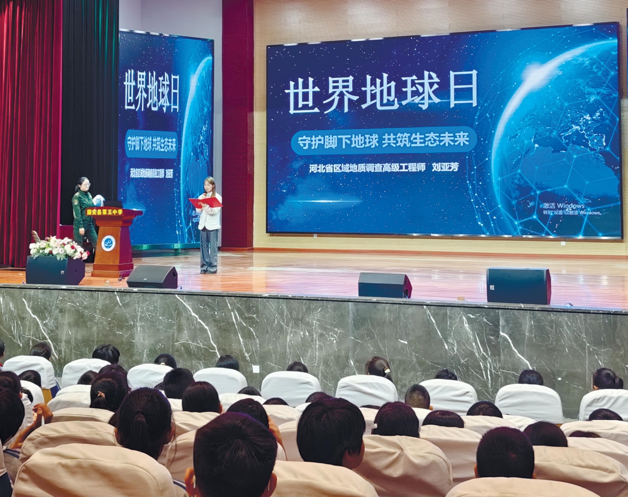 中国地质调查局廊坊自然资源综合调查中心近日联合河北省区域地质调查院、河北省地球物理勘查院、河北省地质测绘院三家单位,共同走进固安县第五中学,开展以“一滴水、一捧土、一方石——地球宝藏的故事”为主题的科普进校园活动,为师生们带来一场别开生面的自然科学盛宴。图为活动现场。李甫 王衡 唐晓东 摄影报道