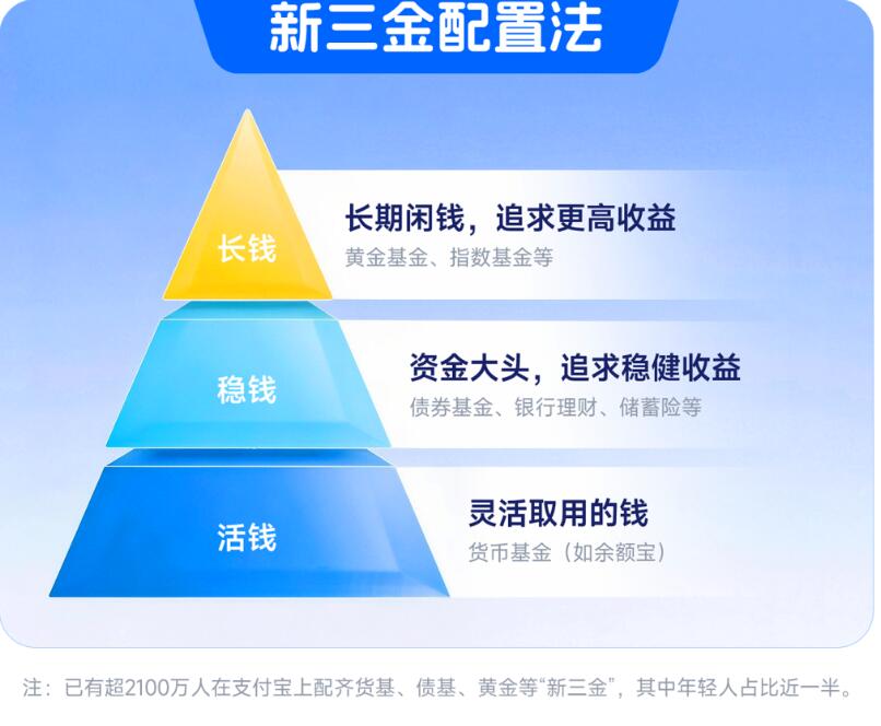蚂蚁财富平台数据显示,截至2025年11月底,已有超过2100万用户同时配置了属于自己的“新三金”,其中年轻人占比近一半。