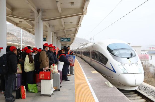 2月25日,返岗务工人员在甘肃定西北站准备乘车。新华社发(王光辉摄)